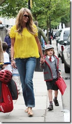 Aqui está Elle MacPherson a ir buscar o seu filho, Aurelius Busson, à sua escola em Londres. O filho de Elle fica amoroso com este ar britânico.